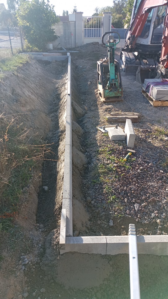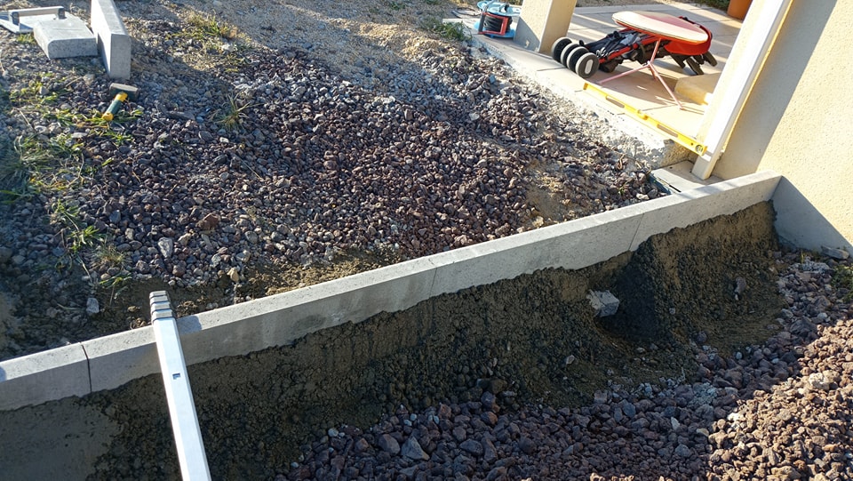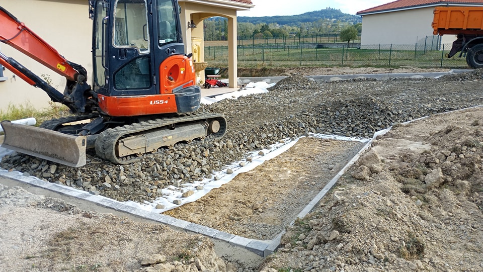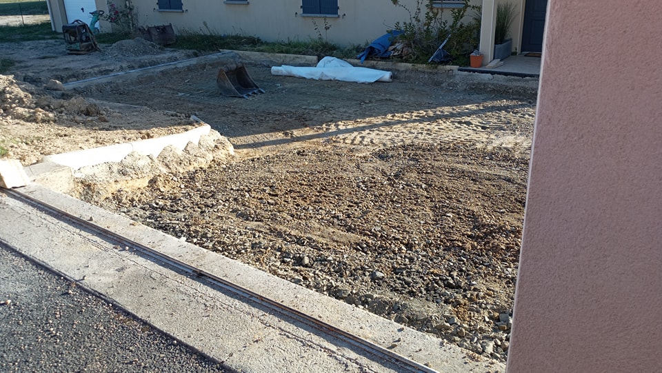Chantier sur le secteur de Billom (63). Mise en place de bordures et préparation d’une cour avant la pose d’un enrobé.